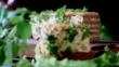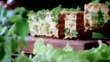 Taking a slice of homemade sandwich cake with rye bread and carrot