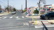 Cars and election signs are visible at the Austin Public Library George Washington Carver Branch polling location on the first day of early voting in the Texas primary election.