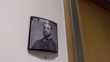 A case belonging to Nigel Farage is packed up outside his office at the European Parliament. A picture of Irish Nationalist Charles Stewart Parnell (1846-1891), the “great disruptor of the UK parliament”, hangs by his door.