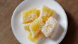 Cassava Cake is coated with Shredded Coconut