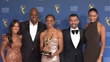 PASADENA, CALIFORNIA - OCTOBER 17: (L-R) Cassie DiLaura, Kevin Frazier, Nischelle Turner, Denny Directo and Rachel Smith pose with the award for Outstanding Daytime Personality Daily for "Entertainment Tonight" at the 52nd Annual Daytime Emmy Awards Winners Walk at Pasadena Civic Auditorium on October 17, 2025 in Pasadena, California. (Footage by New Vision/Getty Images)