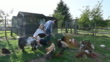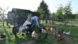 Caucasian couple in early 20s caring for chickens and goats - 4K stock video