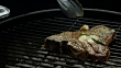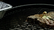 A Caucasian Hand Places Grilled Shrimp from a Barbecue into a Metal Serving Container - 4K stock video
