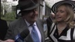 Celebrity guests arrive at St Bride's church in Fleet Street for the Murdoch-Hall ceremony. Guests include: The newlyweds' service is due to start at 11am in St Bride's Church, which proclaims itself as 'the Journalists' Church' offering 'a spiritual home to all who work in the media'. Guests include: Suzanne Accosta, Bill Wyman, Jeanne Marine and Bob Geldof, James Murdoch and wife Kathryn, Jade Jagger,Richard E Grant and wife Joan Washington, Michael Caine, Barry Humphries and Lizzie Spender. Around 100 guests are expected to attend, including the couple's 10 children from previous marriages. (Footage by PA Media via Getty Images)