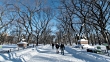 A hyper lapse or moving time lapse through the Mall in Central Park after a large snowstorm.