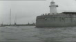 ITN Roving Report: Channel Cruise; Barry taking dinghy for spin round bay in preparation / Various shots of Cee Jay filmed from dinghy; including Cee Jay sailing past mole at Dover / Cliffs of Dover (described by Barry as "grey cliffs of Dover") / Various shots on board boat out at rough choppy sea, Barry lookin gseasick and smoking cigarette / Captain at controls / Metal device hoisted (up mast (to increase boat's visibility on other ships' radars) / Echo sounder / Moorhouse and Barry in cabin consulting charts / Barry on side of boat securing loose rope / Various shots of crew members attempting to relax on board / Ship sailing through rough seas / Barry going below decks and lying down as feels seasick