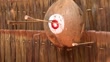 Charles and Camilla South East Asia tour: Charles and Camilla visit Sarawak and Semenggoh Wildlife Centre; MALAYSIA: Borneo: Sarawak:EXT***FLASH PHOTOGRAPHY*some music***Prince Charles, Prince of Wales and Camilla, Duchess of Cornwall, in long room at Sarawak Cultural village / Oswald Braken (tribesman) talking about which animals they shoot with blowpipe SOT / darts in and around target / EXTCharles and Camilla on raft sailing across river / Charles and Camilla disembark raft