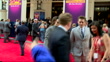 Musical: 'Charlie and the Chocolate Factory' theatre premiere: Arrivals and interviews; Matthew Morrison (actor) interview SOTUma Thurman (actress) posing for press on red carpet and hugging man on stepsINTGiant 'W' lit up in centre of reception Douglas Hodge (actor) interview SOT
