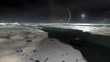 Animation of a crescent Charon and the distant Sun, from the surface of Pluto, a drawf planet in the Kuiper Belt. Charon is the largest of Pluto's moons, with over half the diameter and an eighth of the mass of the dwarf planet itself. The two bodies are tidally locked to each other, presenting the same face to each other at all times. This means that they do not appear to move in each other's skies. They orbit each other at a distance of some 19,500 kilometres. The similarity in their masses means that they both orbit a point between them. This could see them be classified as binary dwarf planets