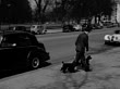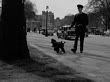 A chauffeur takes two black poodles out from the back seats of a Rolls Royce and takes them for a walk in Hyde Park; 1953. (Core Number: SFLP065S)