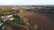 Chaumes-en-Brie, Seine-et-Marne, France - October 25, 2024: Aerial footage of Chaumes-en-Brie town at sunrise during autumn.
