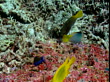 Checkerboard wrasse, Rusty parrotfish and Sulphur damselfish eat coral (Core Number: NBSL952R)