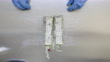 Close-up of a cook making vietnamese style vegetarian spring rolls on commercial kitchen counter. Hands of a chef wearing protective glove making vietnamese spring rolls.