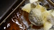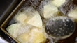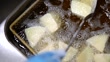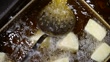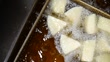 Chef prepares delicious deep-fried dishes.