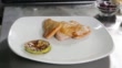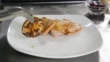 Chef serving chicken breasts with red beet risotto and zucchini - HD stock video