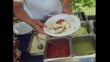 Chef serving tacos and tostadas to tourists at beach resort, Cancun, Mexico; 1987 - HD stock video