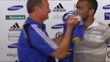 Chelsea unveil new signing Jose Bosingwa Ches; ENGLAND: London:INTChelsea Manager Luiz Felipe Scolari and new signing Jose Bosingwa posing for photocall with shirt Jose Bosingwa press conference SOT (translated)- Do my best / talks of what he thinks of Luiz Felipe Scolari as a Manager