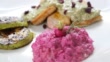 Chicken breasts with red beet risotto and zucchini