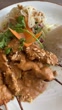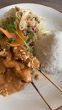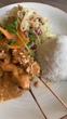 Chicken satay served with rice and green papaya salad - 4K stock video