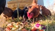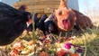 Chickens and Crows Feasting on Fresh Vegetable Scraps in a Farmyard - 4K stock video