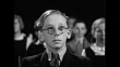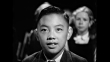 MS children (age ten or so) in theater-type seating / VS close ups of 3 boys, two whites and one Asian / MCU-TILT DOWN little blond girl with Scottish Terrier in her lap; dog yawns, pants / MS orchestra conductor Bernard Heinze stands next to mic on stand, turns toward camera and makes motions with his baton and free hand / Note: exact year not known