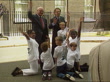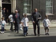 MILLENNIUM 'Children's promise'; ITNENGLAND: London: Downing St:Ext: Tony Blair (PM) out of No.10 with group of children and Sir Richard Greenbury (Marks & Spencer Chmn)CMS Small childCMS BlairMS Blair, Greenbury and children posing for photo-op