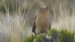 A solitary chimango caracara (Milvago chimango) perches on a green bush amongst long grasses and looks around the surrounding environment for potential threats, Patagonia. (FKAD027Y - Clip taken from programme rushes - 21944)