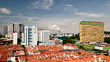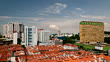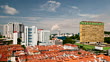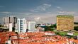 Timelapse of city scenery of Singapore from the elevated view in daytime, showing private condominiums, public apartments aka HDB flats, commercial buildings, shopping centres and foreground is prewar shop house at Chinatown.
