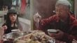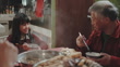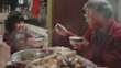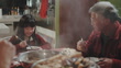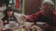 Chinese grandfather passing food to granddaughter during Chinese New Year family reunion dinner hong kong multi generation family having family reunion dinner at home - 4K stock video