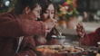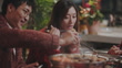 Chinese husband passing food to wife during Chinese New Year family reunion dinner hong kong multi generation family having family reunion dinner at home - 4K stock video