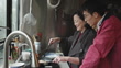 Chinese senior woman showing son preparing tradition chinese food carrot cake for chinese new year family reunion dinner - 4K stock video
