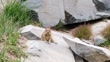 A chipmunk stands alert among rocks and green grass in a natural setting. Wildlife, nature observation, forest animal. - HD stock video