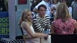 Chloe Grace Moretz and Jamie Blackley being interviewed on the outside set of the Good Morning America show in Times Square in Celebrity Sightings in New York, 08/18/2014
