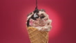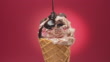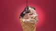 Chocolate Cherry Ice Cream with Chocolate Topping - 4K stock video