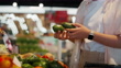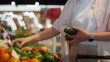 A shopper carefully examines avocados, looking for the perfect ripeness, surrounded by colorful fruits and vegetables in a well-lit grocery store.”