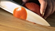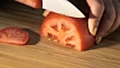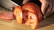 HD1080. Chopping tomato for salad. Close up view. Tripod.