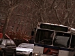 NEW YORK CITY: HARLEM: WS City bus w/ Morningside Garage BG, Broadway at 123rd Street, M104 West Harlem bus moving on street, passing through frame REVEALS street signs on pole Moylan Place & Broadway (bent back sign, way not showing).
