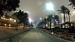 MS DRIVING (POV Front of moving vehicle) City street, Crown Towers, construction & row of palm trees on right, trees on sidewalk left, City of Dreams sign, Sands Cotai Central entertainment complex, The Venetian Macao Resort-Hotel skyscraper, stopping at red traffic light, unidentified people crossing street, fog, smog.