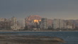 City with apartment buildings by the sea, with the first light of dawn. - 4K stock video