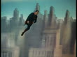 1941 FILM MONTAGE MS Clark Kent enters phone booth/ ZO MS Superman exits booth and jumps/ WS TU Superman flying above city - stock video