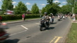 Classic car parade led by John Surtees; Motorbike s and mopeds along road