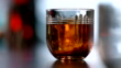 Cocktail made whiskey, rye, bourbon or Brandy being poured into the glass and garnished with a cocktail cherry.