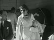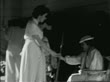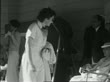 B/W 1937 Claudette Colbert shaking hands with people at outdoor party at Pickfair / home movie