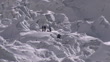 Expedition Everest: Climbers on Khumbu Icefall; More of Everest climbers seen as small black figures trekking across glacier PULL OUT (repeated) / Climbers toiling up glacier PULL OUT / Climbers seen as dots against huge whorls and peaks of ice PULL OUT general view of Khumbu Icefall
