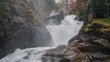 Clip of a waterfall cutting through the autumnal forest in the French Pyrenees mountains - 4K stock video