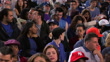 CLOSE ANGLE OF BASEBALL FANS, SPECTATORS, CROWDS, AUDIENCE SITTING IN YANKEE STADIUM SEATS AS IF WATCHING A BASEBALL GAME. PEOPLE WEARING YANKEE BASEBALL HATS. PEANUT VENDOR WALKING DOWN AISLE. YANKEE FANS. - HD stock video