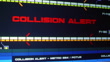 CLOSE ANGLE OF "WASHINGTON DC METRO" DIGITAL DISPLAY DURING EMERGENCY. "COLLISION ALERT" NOTIFICATION ON SCREEN. FLASHING LIGHTS ON MAP.