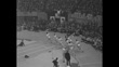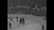 Close shot of feet of Pole vaulter Cornelius Warmerdam as he puts on shoes, tilt up to his face / runners start two-mile run and race around track / two runners racing on last lap and winner Gregory Rice crossing finish line / Rice walking along being congratulated