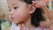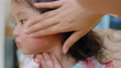 Close-up Baby face having rash usually appears on toddler girl. Allergy red cheek in a child - 4K stock video