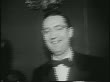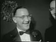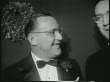 B/W 1955 close up Benny Goodman talking with Steve Allen at premiere of "The Benny Goodman Story" / newsreel